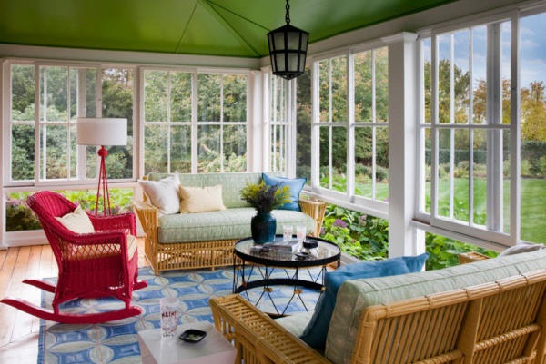 Шикарный интерьер застекленной веранды можно создать своими собственными руками. Для этого не требуется много усилий и специфических навыков. Достаточно включить фантазию, можно обратиться к помощи интернета. Только гармоничное сочетание формы, конфигураций, цветовых решений конструкции может создать невероятную атмосферу уюта и тепла в вашем помещении. Светлый потолок, стены индивидуального оттенка придают помещению ощущение невероятного шикарного внешнего вида.