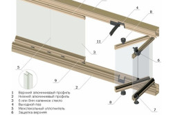 Перемещение фрагмента материала происходит за счет направляющих, которые устанавливаются вместе с рамой. Если планируется подоконник, то его монтировать нужно на стадии крепления рамы к каркасу.