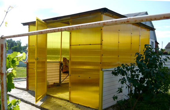 - красиво застекленная конструкция служит хорошим декоративным украшением всего участка.