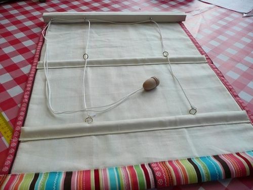 Получившуюся рулонную жалюзи закрепите на ролике.
