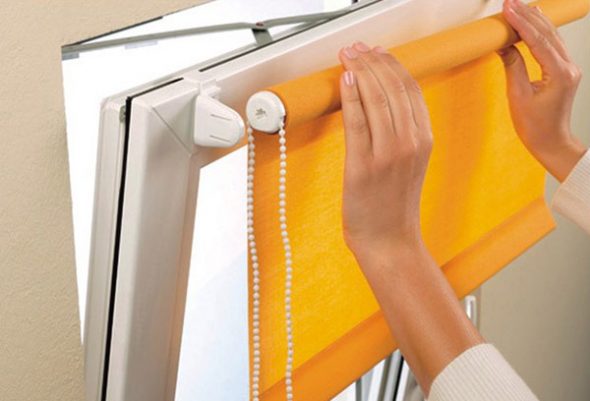 Как крепить рулонные штор класса «мини» на открывающуюся оконную створку: