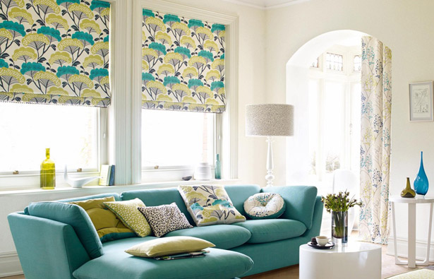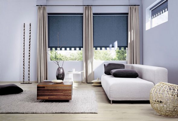 Рулонные шторы могут выступать законченным элементом декора, а могут также дополнять традиционные портьеры, защищая их от выцветания и разрушения структуры ткани от яркого солнца.