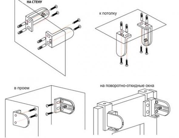 После того, как роликовые шторы, изготовленные своими руками готовы, необходимо их установить. Для этого можно выбрать несколько вариантов крепежа: