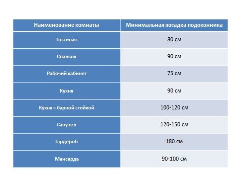 Дело в том, что подоконник не бывает установлен сам по себе, это — часть оконного блока, и высота его установки автоматически обозначает высоту нижнего среза окна. Поэтому следует рассматривать весь оконный блок в целом, учитывая его высоту и назначение.