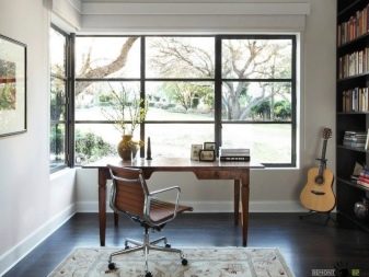 Некоторые специально делают широкие подоконники и используют их в качестве письменного стола. В среднем расстояние от пола должно составлять порядка 60-65 см. Это оптимальные размеры, при них будет освещаться большая часть кабинета.