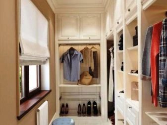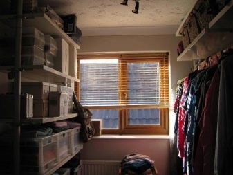 Высокое расположение оконных проемов свойственно и для гардеробной комнаты. Как правило, размещают окна на расстоянии ста восьмидесяти сантиметров от напольной поверхности. Это позволит обеспечить хорошее проникновение и равномерное распределение естественного света для того, чтобы быстро отыскать необходимую вещь.