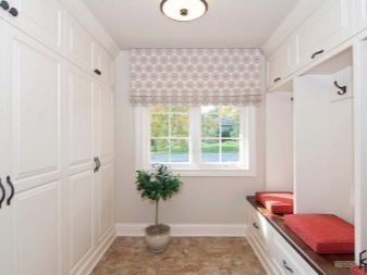 Если ваша прихожая примыкает к лоджии, то рекомендуется подобрать высоту оконного проема, соответствующую высоте находящейся в помещении мебели. Часто в прихожей частного дома в качестве источника освещения используется искусственное (электрические светильники или лампы). Но с позиции пожарной безопасности все же рекомендуется установить малогабаритное окно.